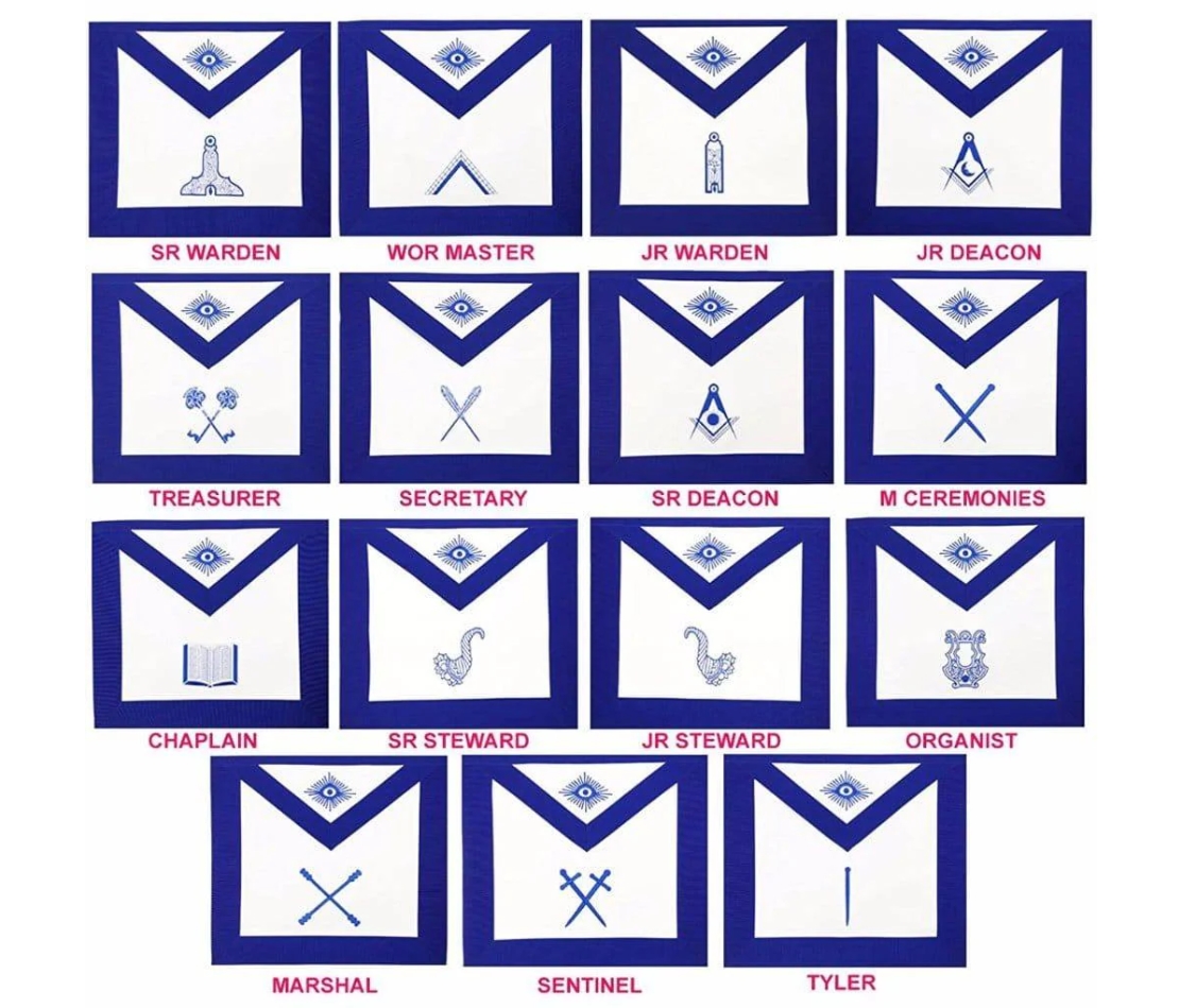 Masonic Blue Lodge Officers Aprons- Set of 15 Aprons